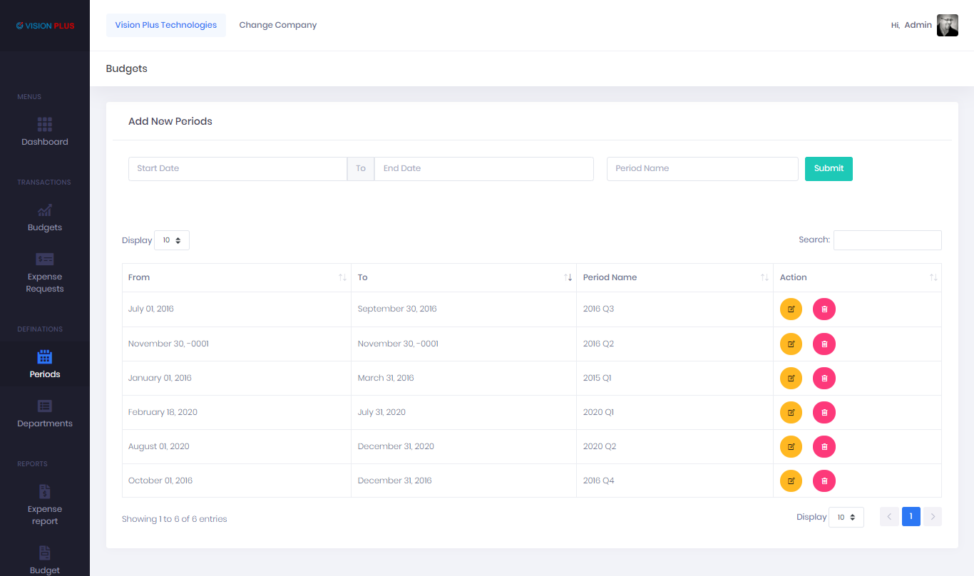 You can see all the expenses Period and Deparment wise, plus you have filter to see report for specific department or period.